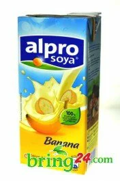Wasser, Zucker, geschälte Sojabohnen (6,2%), Bananensaft (1,2%) aus Fruchtsaftkonzentrat, Aroma, Calciumcarbonat, Meersalz, Säureregu- lator (Monokaliumphosphat), Stabilisator (Gellan), Vitamine (Riboflavin (B2), B12).